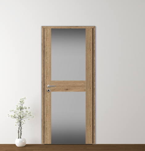 8mm vastagságú edzett üvegfelülettel rendelkező ajtók, melyekben az üvegbetét tartó funkcióval is rendelkezik és egészen a lap széléig kifut. Ilyenkor egy edzett üvegmező köti össze a több részből álló ajtólap elemeit.